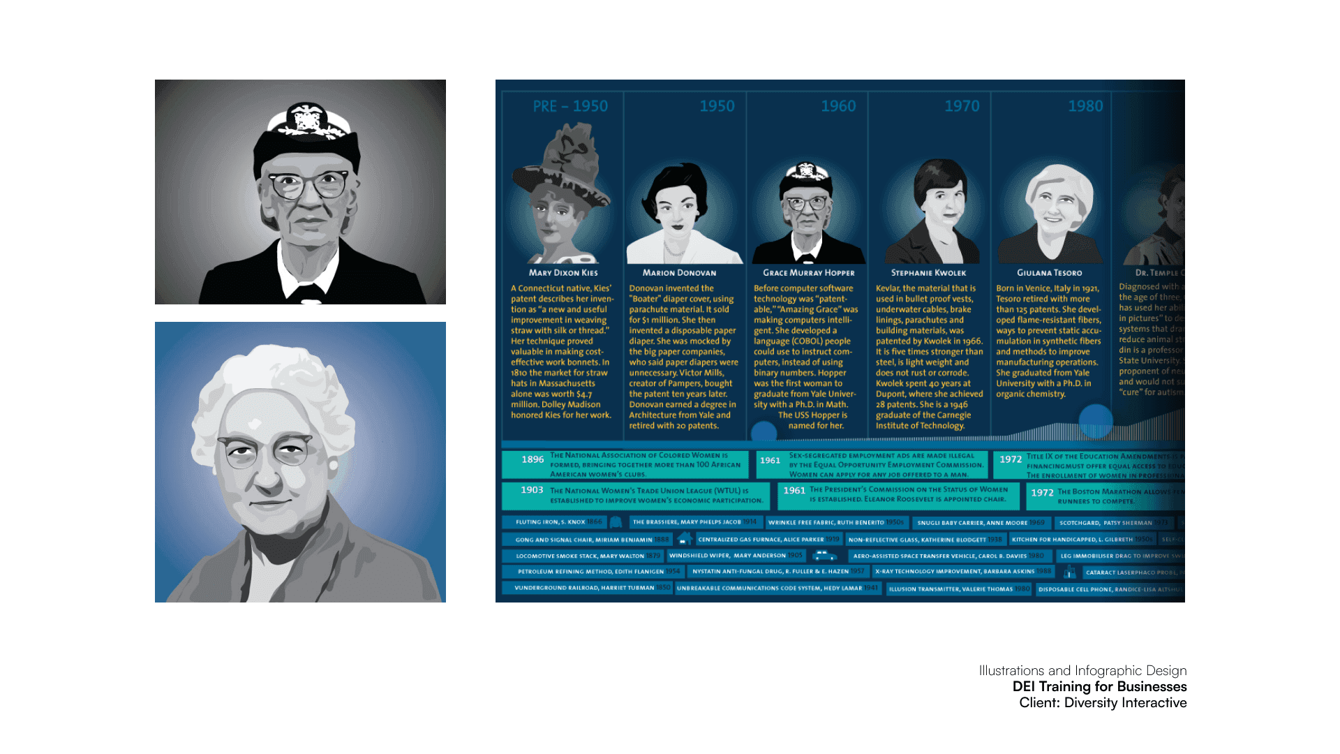 I've worked on book illustrations for clients and publishers. I've also created infographic designs used by clients like Dell and USAA to improve their DEI training materials.